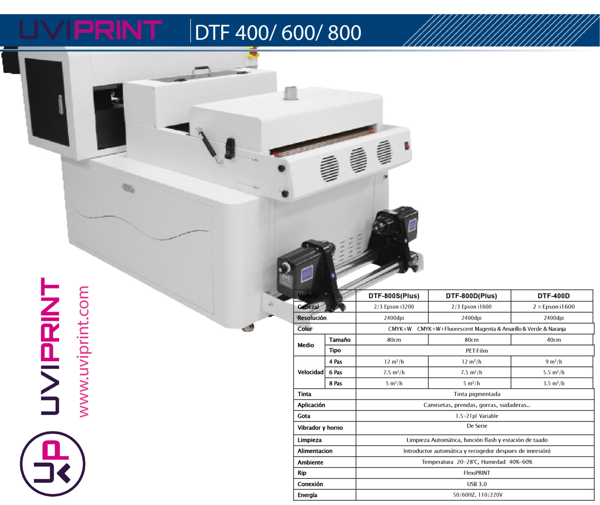 • Con la impresora Uviprint DTF podrá imprimir para realizar personalizaciones sobre cualquier tejido que necesite.